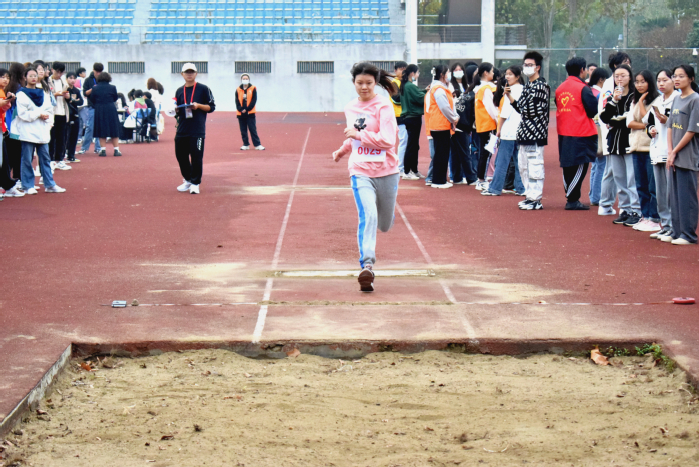 百米赛道上,运动员们如离弦之箭、风驰电掣,一步一个脚印,奋力冲向终点。跳远比赛中,随着运动员们助跑、弹跳、腾空、落地,一个个轻捷的身影从眼前掠过,踏过沙坑走向胜利。视线继续转移至操场一角,沙地前,运动员们在进行铅球比赛,他们奋力一掷,铅球在空中划过一条优美弧线,直至落地。
