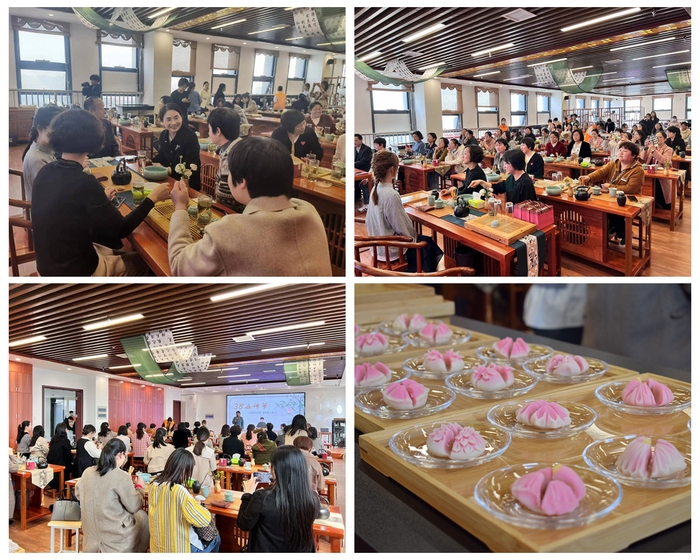 55栋708南艳茶舍里,大家在茶艺师的悉心指导下,举杯学茶艺、低头品香茗,在茶韵茶香中,观茶艺、赏茶道、学茶礼、品茶味、闻茶香,一举一动之间,展示出古色古香的中国传统茶道文化和女性优雅端庄的气质,现场暖意融融、茶香四溢。