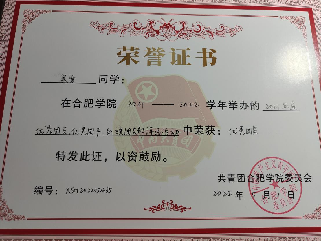爱因斯坦说:“成功没有捷径,唯有热爱与坚持。”吴雪同学自入学以来,始终把提升自我作为最重要的目标。她认真对待每一门课程,在图书馆闭馆时的月光陪伴下努力学习,连续三年综测班级前10%,斩获校特、一、二等奖学金。