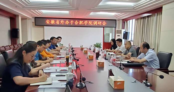 6月19日,安徽省人民政府外事办公室副主任秦俊峰、出国管理处处长王年宝、礼宾处处长刘鹏等一行来校调研合肥学院中德合作及中德教育合作示范基地建设工作。校长吴春梅在行政楼九楼会议室接待了调研组一行,校党委副书记刘建中、发展规划处处长缪群道、国际交流合作处处长贾峰、先进制造工程学院院长吕刚、中德教育合作示范基金办公室主任刘金平、经济与管理学院副院长吴悦及国际交流合作处相关人员参加了调研汇报。