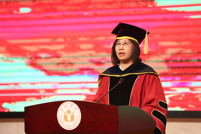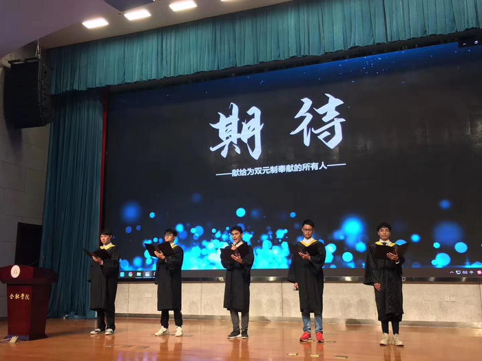 王佩刚还对大陆班毕业生们表达了期望与祝福:成功的路上向来没有童话,成功是一步一个脚印踏踏实实地走出来的。习近平主席在同各界优秀青年代表座谈时讲到的“有多大担当,才能干多大事业,尽多大责任,才会有多大成就”。我们的国家,我们的民族,从积贫积弱一步一步走到今天的发展繁荣,靠的就是一代又一代人的勇于担当,靠的就是中华民族生生不息的强烈责任感。合肥学院被誉为中国高等教育改革的小岗村、新建本科院校的排头兵,正是因为合肥学院人具有敢为天下先的社会责任与担当精神。今天,作为合肥学院的毕业生,希望同学们要薪火相传,在星辰大海的征途中,心有所属,行有所善,用目标和理想来引领人生规划,为现代化五大发展美好安徽做出贡献,为实现中华民族伟大复兴的中国梦做出贡献!