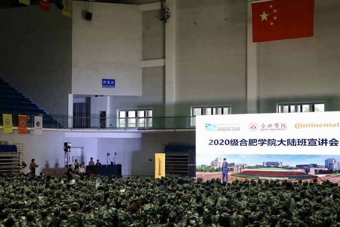 首先,他代表校方对合肥学院2020级新生致以诚挚的欢迎和祝福,并详细介绍了这个由合肥学院、德国埃姆登里尔应用科学大学和大陆集团三方合作办学的项目,阐明了大陆班的办学理念和入学要求。他表示,无论是合肥学院校方还是德国高校和公司都对大陆班寄予了厚望,希望有能力和追求的同学加入大陆班,成为挥洒青春、一起拼搏的一员。