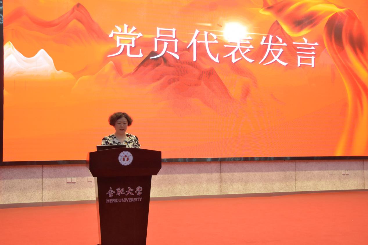 自动化系教研室陈克琼同志和智能制造工程系金飞翔同志分别作为优秀共产党员代表上台进行了发言。他们分享了在强化党性修养、提升思想引领、发挥先锋作用、服务人才培养等方面的心得体会,生动彰显了新时代中国共产党人的政治品格、价值追求、精神风范和责任担当。