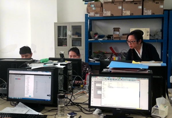 李红教授办公室对面就是创新创业团队合肥正鼎软件科技有限公司研发人员的工作地点,在与笔者交流期间,李教授不时与工作室的研发工程师、学生进行项目交流。参与项目研发的计科系大四学生钱海峰说:“李教授经常与研发工程师交流,关心项目研发进度,为研发提供方向、建议和指导”。