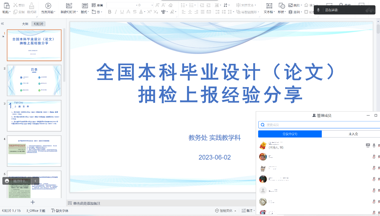 6月2日,世俱杯2023年教学管理人员系列培训会议(毕业设计(论文)抽检上报工作专题)通过腾讯会议平台,于线上举行。各教学单位教学办主任、教务员参加会议。