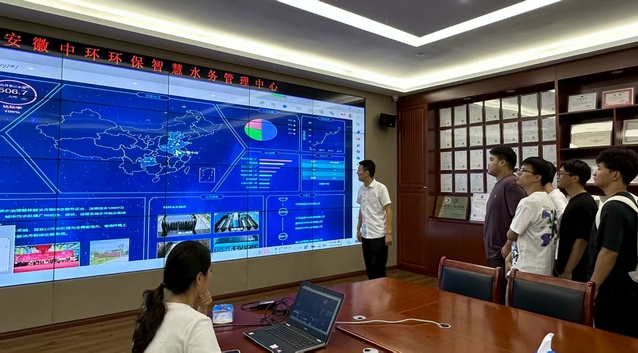 在智慧水务中心,同学们目睹了如何通过大数据、物联网等先进技术实现水务设施的智能化管理和远程控制。巨大的电子屏幕上实时更新着各地项目的运行数据,展示了现代科技与环境治理的深度融合,让同学们直观感受到"智慧环保"的魅力。在这里,同学们开启了一场关于“水”的探索之旅,深刻理解了环境工程师作为“城市水脉守护者”的责任与担当。