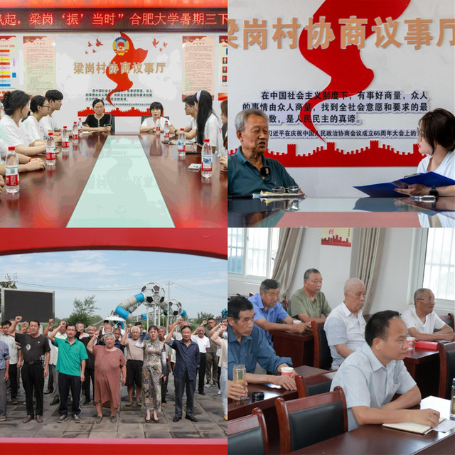 团队赴梁岗村实地考察协商议事厅与党建主题公园,学习当地特色议事机制。团队走访了两位党龄数十载的老党员,聆听他们投身乡村建设的奋斗历程。通过发放问卷、深度访谈等方式,团队收集逾百份一手资料,为提炼基层治理“梁岗经验”奠定数据基础。