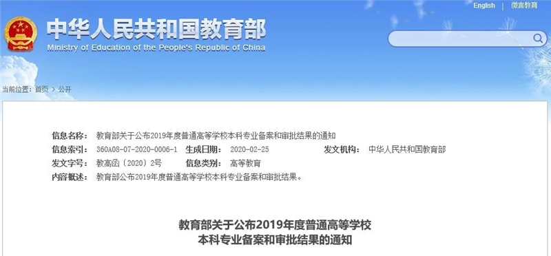 日前,教育部公布2019年度普通高等学校本科专业备案和审批结果。