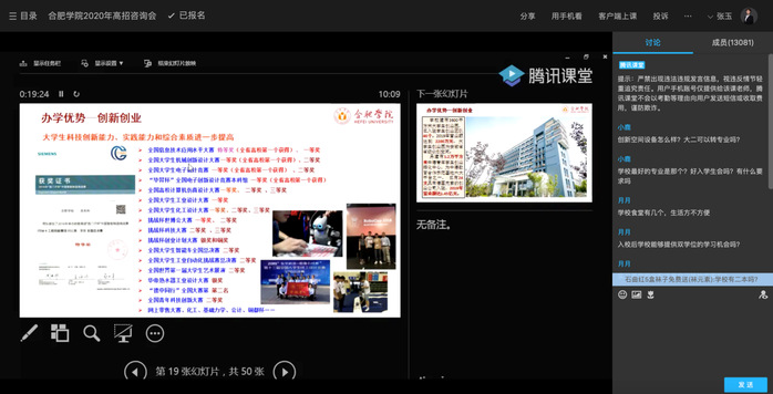 直播课堂吸引数千名考生。在疫情防控的特殊时期,为方便广大考生和家长及时全面地了解学校办学特色和招生信息,今年学校以线上直播和在线互动的方式开展了4场专场招生宣讲,累计超2万名考生和家长来到直播课堂参与咨询。线上直播招生宣讲以图文、视频结合的形式把学校办学特色、人才培养、专业特色、升学就业情况等多个方面的情况向考生和家长进行了展示,并详细解读了学校的招生政策、历年录取情况等。