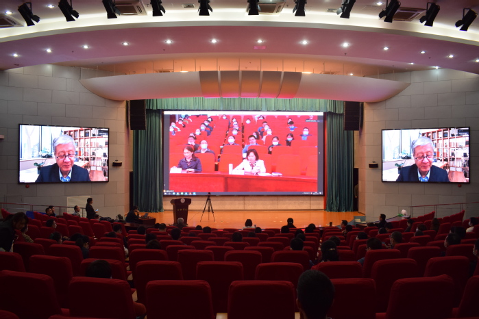 校长吴春梅、副校长陈秀及各学院骨干教师共150余人聆听了报告,吴春梅主持报告会。会议以智能交互远程视频的形式进行,这是世俱杯首次采用现代信息化手段召开的交互式线上报告会。