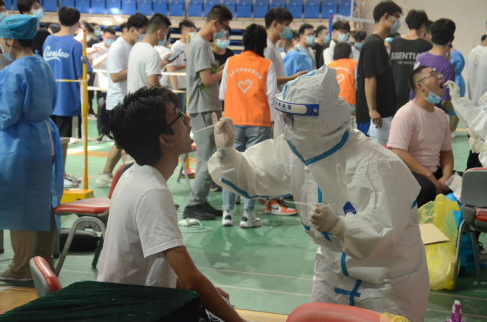 学校还第一时间组织了全员核酸检测,为新学期开学筑牢校园防疫安全墙。采样点合理布局并设置卡位,积极落实相关配套设施、物资准备和现场保障。采样过程中,医务人员严格按照相关流程指挥疏导、规范操作,受检学生及教职工有序进入采集点,期间全程佩戴口罩且保持安全距离,在检测完成后迅速离场,大幅提高采集效率。