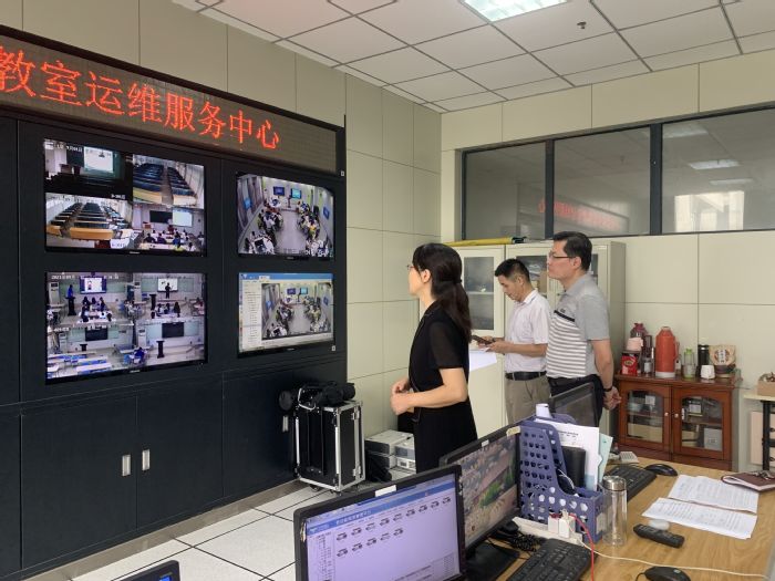 9月1日上午8时,副校长陈秀,教务处处长王晓峰,教学质量监控评估处处长余国江,后勤集团经理叶道全,教务处副处长储忠、倪泽强、王仁宝带队检查开学首日教学情况。检查组深入教学一线检查教师教学工作和学生学习状态,检查多媒体维保中心运行情况,并通过多媒体网络集成中心视频查看全校第一天上课情况。陈秀表示,各部门要全力做好教学保障工作,同时要坚持常态化疫情防控的各项措施,为学生高效率学习创造良好环境。