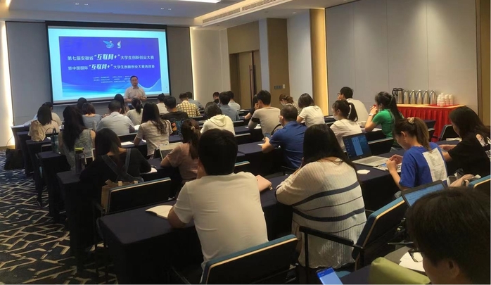 图为“互联网+”省赛线上比赛前工作筹备会议