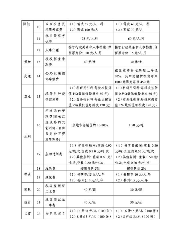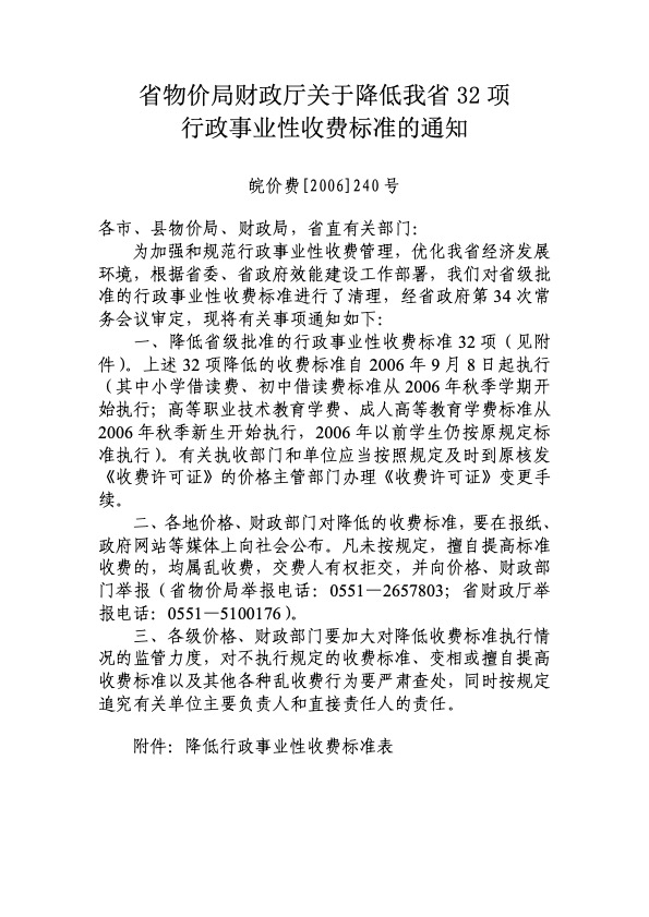 省物价局财政厅关于降低我省32项行政事业性收费标准的通知