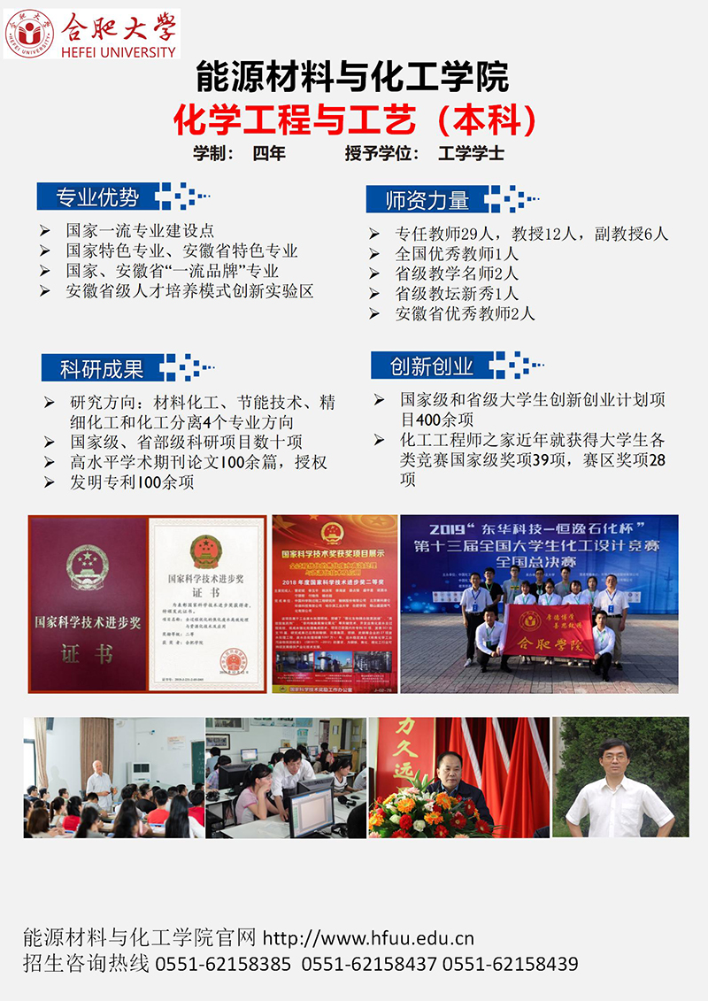 培养目标及特色:本专业围绕应用型化工人才培养关键要素,培养德、智、体、美、劳全面发展,适应区域经济建设与技术发展的需求,具有人文社会科学素养和扎实的理论基础知识,通晓现代化工过程的基本原理、专业技能与研究方法,能够在化工及其他相关领域从事化工生产、产品研发、工艺设计等方面工作的化工工程技术人才。本专业现为“国际工程教育认证专业”,设置了化工分离、精细化工、材料化工和节能技术等四个专业方向,注重培养学生的工程实践能力、创新能力和国际化视野等。