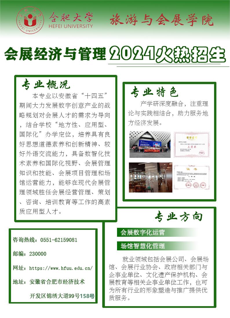 会展经济与管理(本科) 咨询电话:0551-62159081